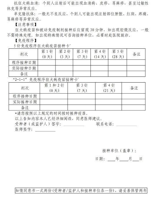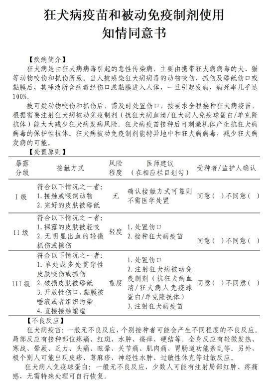 附件:狂犬病疫苗和被動免疫制劑使用知情同意書