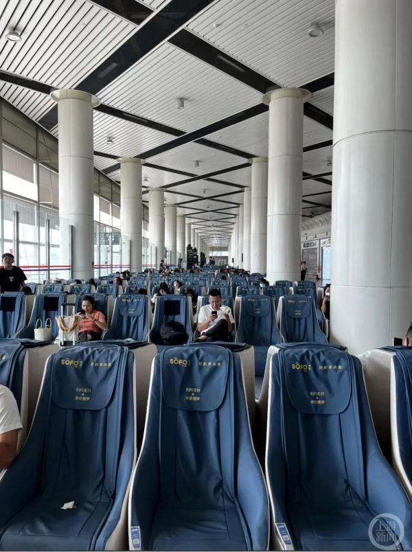 9月16日,太原機(jī)場工作人員回應(yīng)上游新聞?dòng)浾撸闆r屬實(shí),100多把按摩椅擺在一起是為了整體美觀,近期將對座椅擺放做一些調(diào)整。