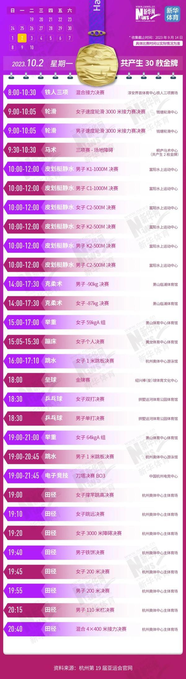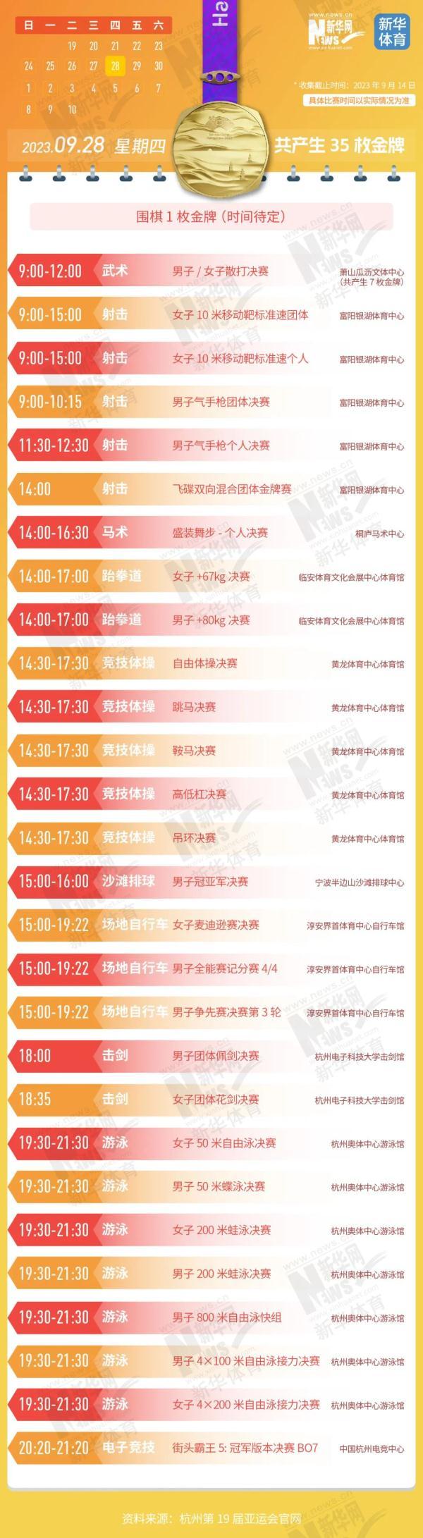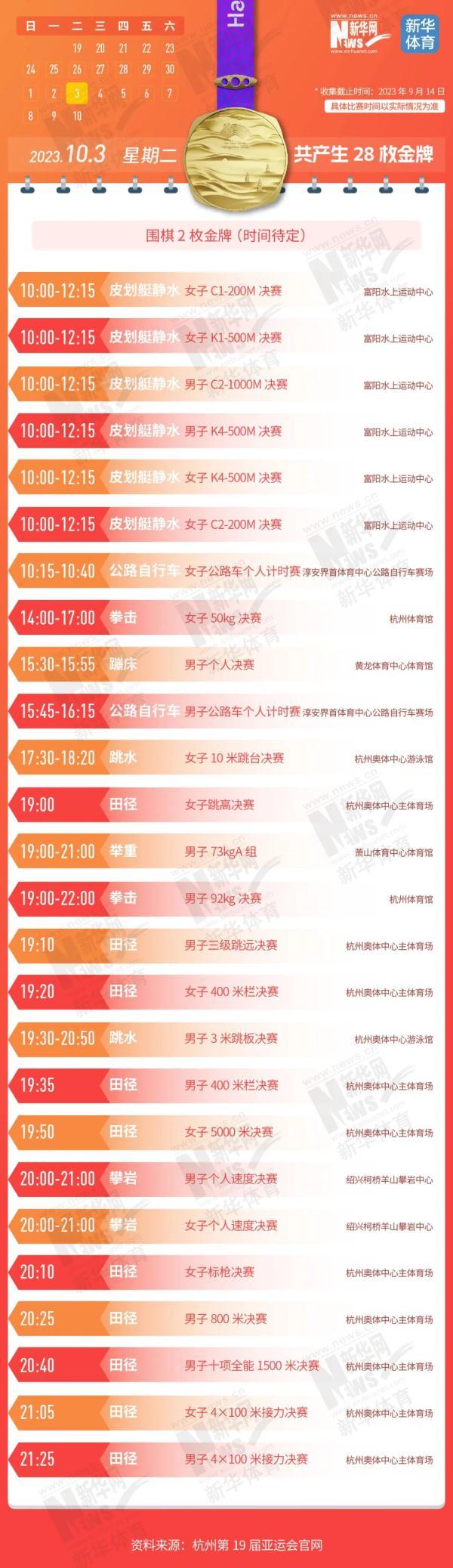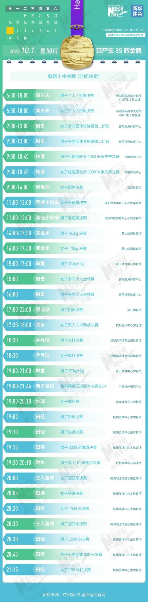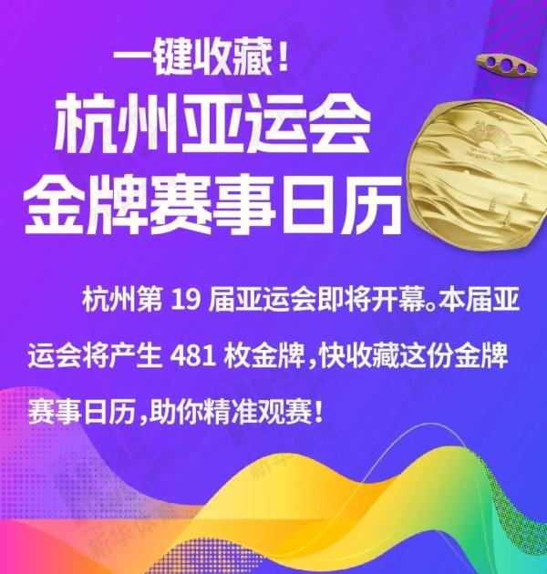 ◆ 杭州第19屆亞運會即將開幕。本屆亞運會將產(chǎn)生481枚金牌,快收藏這份金牌賽事日歷,助你精準觀賽!