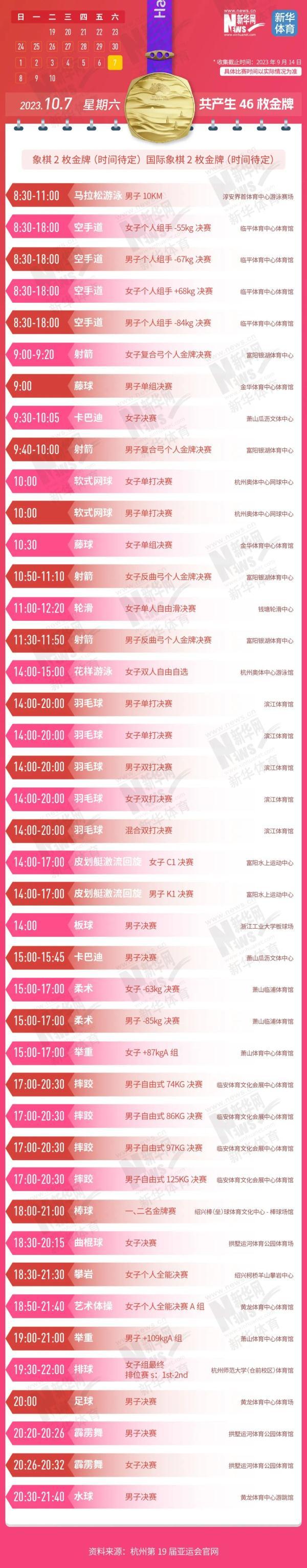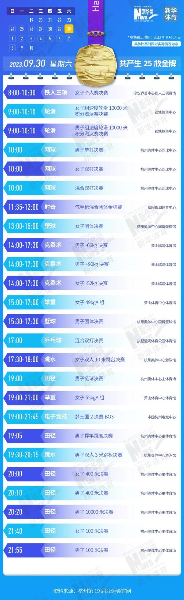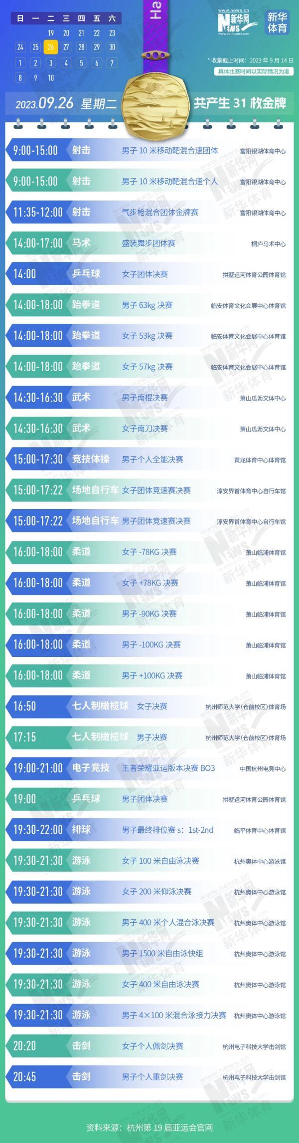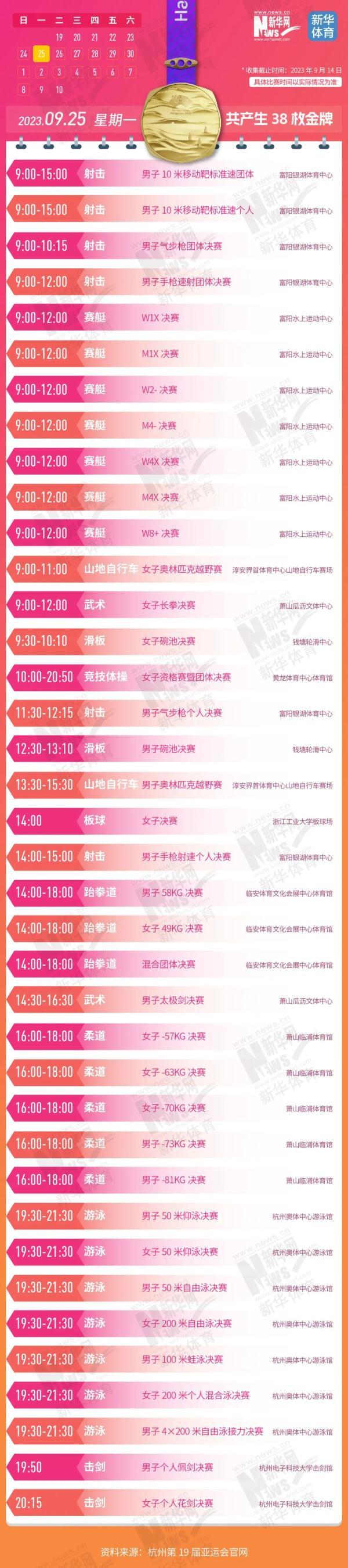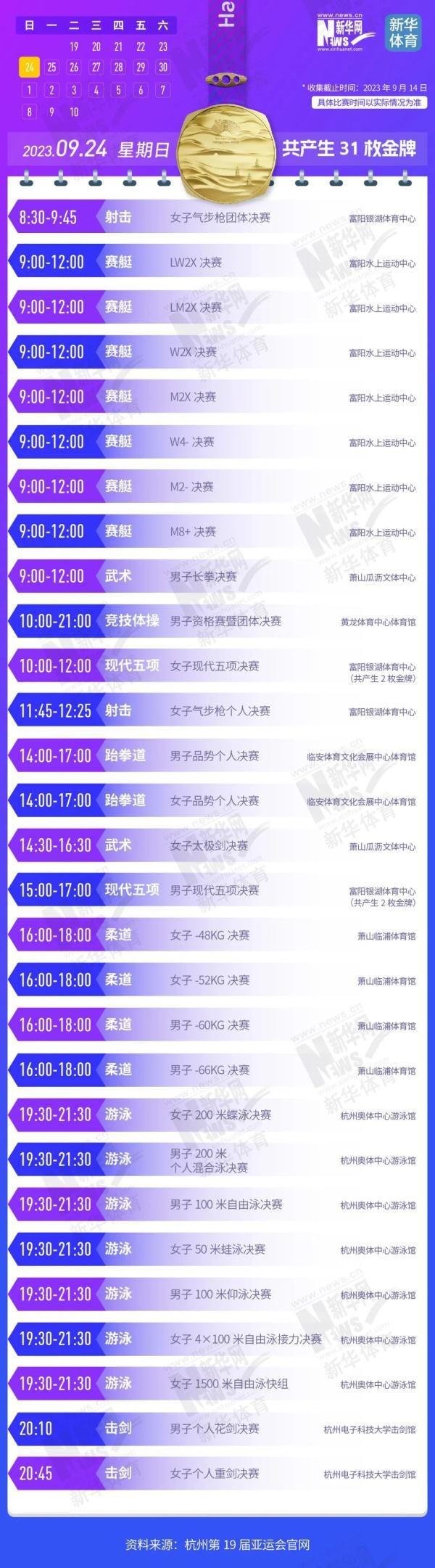 ◆ 杭州第19屆亞運會即將開幕。本屆亞運會將產(chǎn)生481枚金牌,快收藏這份金牌賽事日歷,助你精準觀賽!