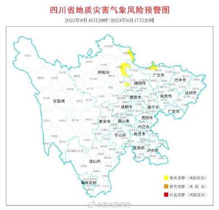 9月16日,記者從四川省自然資源廳獲悉,四川省地質災害指揮部辦公室發布全省地質災害氣象風險預警。據悉,預警時間為9月16日20時至9月17日20時。3級黃色預警,涉及廣元利州區、朝天區、青川縣,阿壩州茂縣、松潘縣、九寨溝縣等2市(州)6個縣(區)。