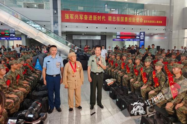 9月16日,三位功臣模范代表在重慶北站為300余名入伍新兵送行并寄語。華龍網記者 石濤 攝