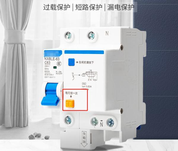這個按鍵要每個月按一次,模擬家庭線路中出現(xiàn)漏電問題,用以觀察空開的漏電保護功能是否正常。