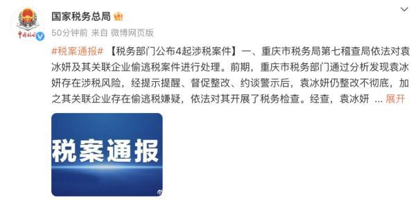 官方通報袁冰妍涉稅案件 四大衛視火速刪文