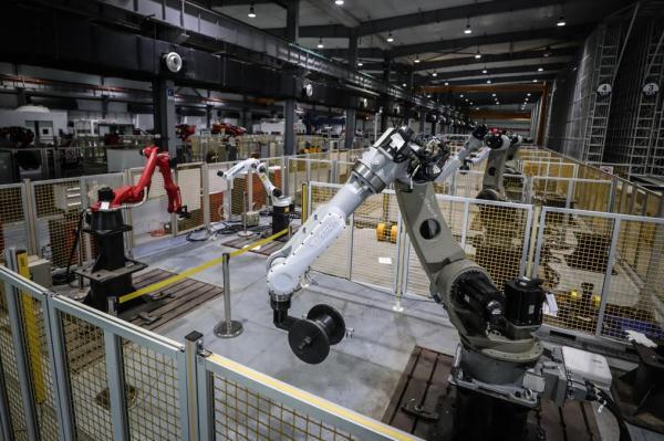 圖為沈陽新松機(jī)器人自動化股份有限公司生產(chǎn)車間。新華社記者潘昱龍 攝