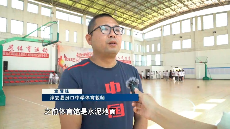 淳安縣汾口中學(xué)體育教師 章耀鋒:之前體育館是水泥地面,運(yùn)動(dòng)很容易起來灰塵。