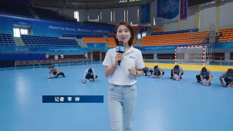 記者李婷:地上是全新鋪設(shè)的懸浮式地板和乳膠墊,來跳一下,彈性十足,能起到很好的保護(hù)和緩震作用。在賽后,這里具備承接各種國(guó)際級(jí)賽事的專業(yè)能力。