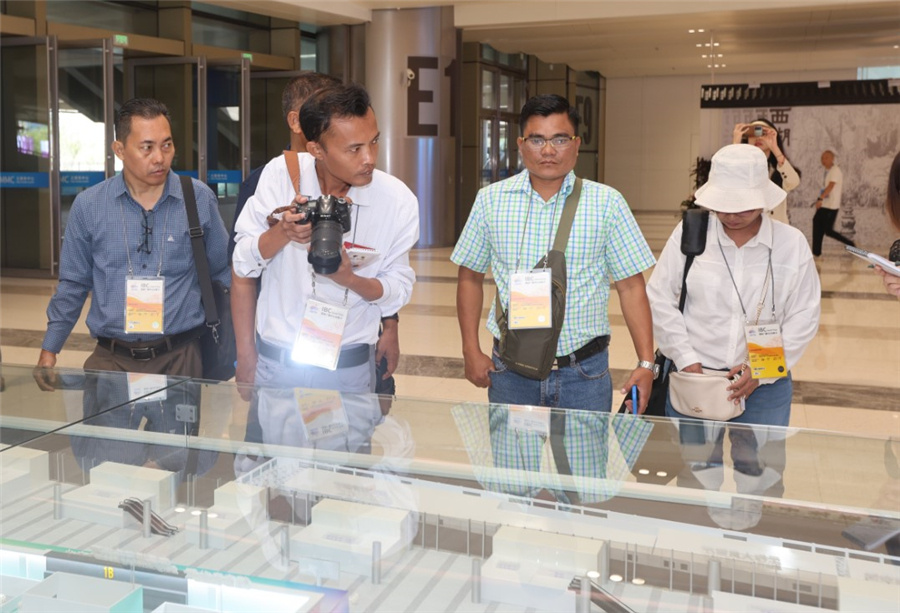 通過講解員的介紹,參訪團依次參觀了商業服務區、生活服務區、主新聞中心(MPC)、國際廣播中心(IBC)等,沉浸式感受杭州亞運會為媒體記者提供賽事報道所需的辦公、語言、交通、餐飲、技術、商業等各類設施與服務。