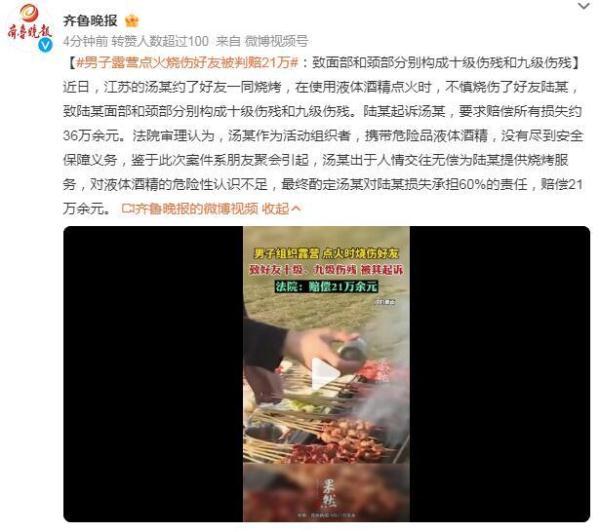 近日,江蘇的湯某約了好友一同燒烤,在使用液體酒精點火時,不慎燒傷了好友陸某,致陸某面部和頸部分別構成十級傷殘和九級傷殘。陸某起訴湯某,要求賠償所有損失約36萬余元。法院審理認為,湯某作為活動組織者,攜帶危險品液體酒精,沒有盡到安全保障義務,鑒于此次案件系朋友聚會引起,湯某出于人情交往無償為陸某提供燒烤服務,對液體酒精的危險性認識不足,最終酌定湯某對陸某損失承擔60%的責任,賠償21萬余元。