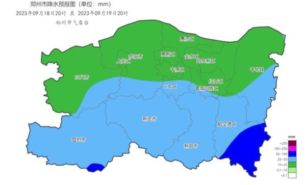 2023年9月18日20時至19日20時鄭州市降水量預報圖(單位:mm)