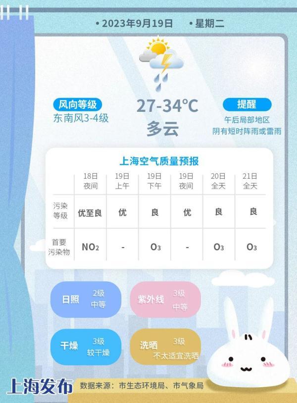 今天上半夜以前可能局部地區(qū)陰有短時陣雨,范圍不大。明天天氣與今天類似,受副熱帶高壓邊緣影響,多云為主,午后局部地區(qū)陰有短時陣雨或雷雨,最低氣溫27度,最高氣溫在34度附近,西部郊區(qū)有可能接近高溫線。雖說是夏末,帶來的卻是“梅雨季”的體感。