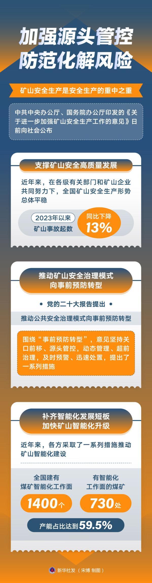 礦山安全生產是安全生產的重中之重。中共中央辦公廳、國務院辦公廳印發的《關于進一步加強礦山安全生產工作的意見》日前向社會公布。