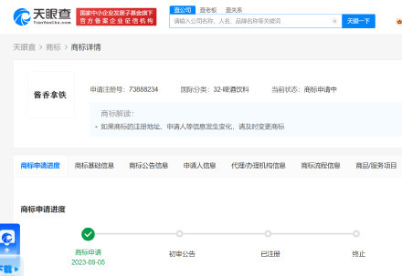 9月19日,瑞幸宣布與茅臺聯名推出的“醬香拿鐵”補貨,全國門店陸續恢復供應。 天眼查App顯示,近日,多個公司及自然人申請注冊“醬香拿鐵”商標,國際分類包括酒、啤酒飲料、方便食品等,當前商標狀態均為申請中。目前,瑞幸和茅臺并未申請“醬香拿鐵”商標,不過,瑞幸已申請方便食品、餐飲住宿類“瑞幸醬香”商標,當前商標狀態為申請中。