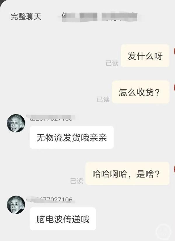 店家表示,拍下半小時發貨,發貨之后,“愛因斯坦大腦”即可生效,立即長在自己(買家)大腦上。此外,拍下為無物流發貨,腦電波傳遞,傳遞過去的是愛因斯坦電波。同時,還發來一句話:“接下來的人生就像開掛了一般,一切蒸蒸日上,非常成功和順利。”