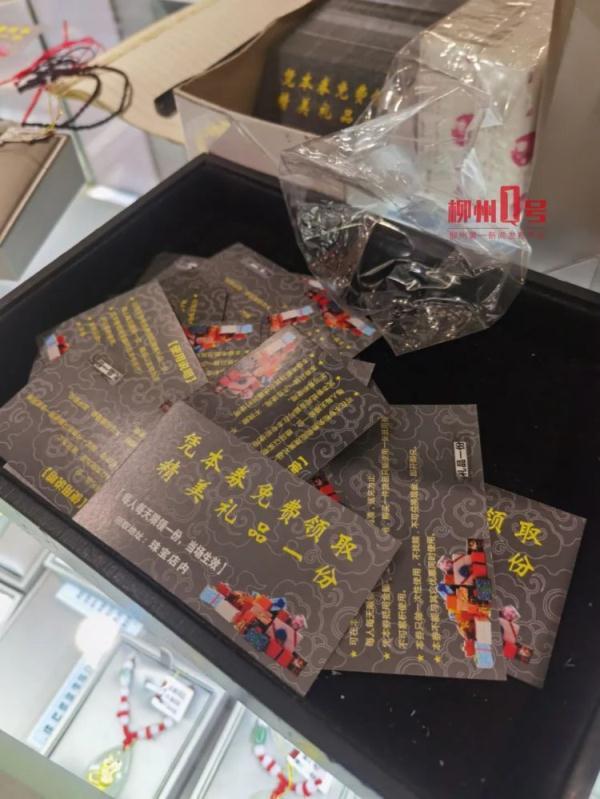 梁女士說,在候車過程中,她發現不斷有乘客被帶到珠寶店柜臺。后來她父母回到家告訴她,班車上就有個婦女,被珠寶店人員同樣以登記車票為由,帶到柜臺刮獎,并刮出了“2000元代金券”。