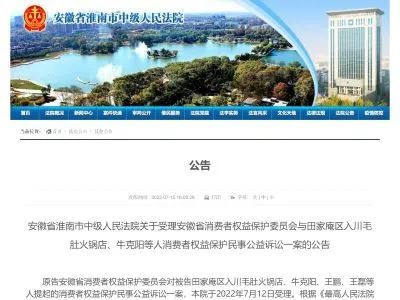 2022年7月6日,淮南市人民檢察院作出支持起訴意見書,支持安徽省消保委向淮南市中級人民法院對牛某等人提起公益訴訟。