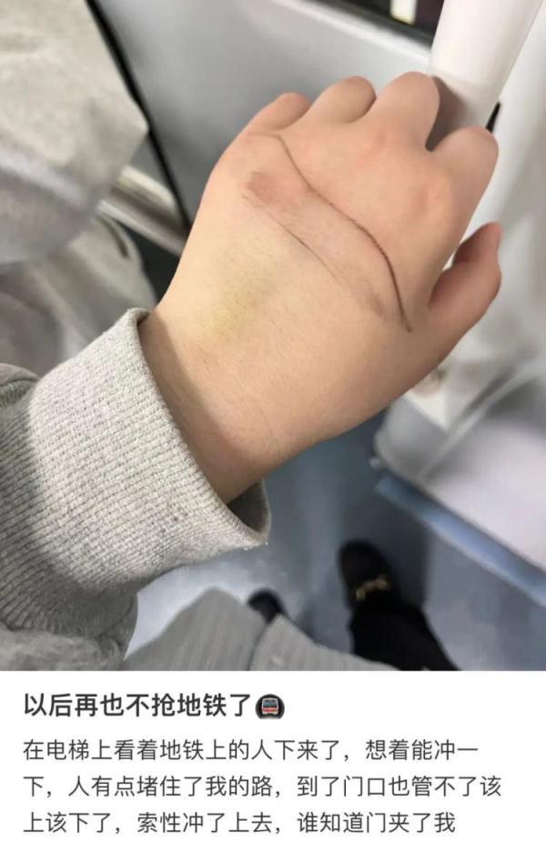 同車廂乘客朱先生告訴記者,這名女子的后背被地鐵門夾住大哭 。當時車里有人打電話求助,并讓靠近這名女子的一個小伙子去按緊急開門裝置,但他剛把手伸過去,看到上面的標識“擅自使用將負法律責任”后,又將手縮回來了。