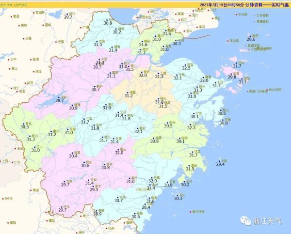 今天(19日)主打“熱”,不到10點,在陽光助力下,浙江省大部氣溫已被3字頭覆蓋,預計今天最高氣溫:沿海地區32-34℃;其它地區34-36℃。