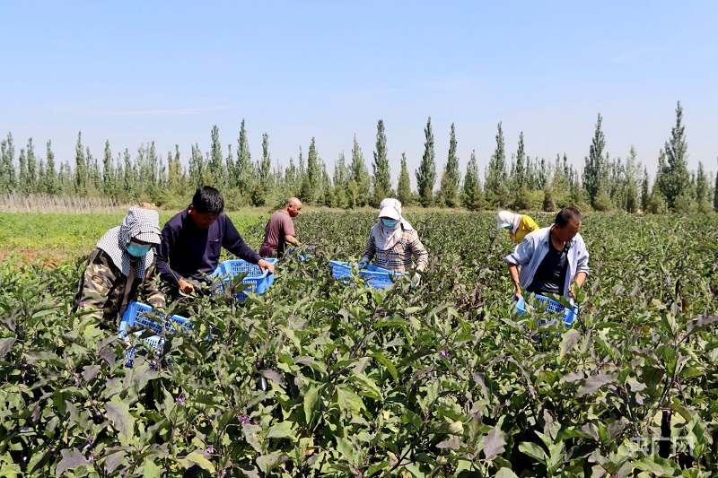 離開蘋果園,記者來到了位于準(zhǔn)能集團(tuán)的生態(tài)農(nóng)業(yè)試驗(yàn)田。這里的各種果蔬長(zhǎng)勢(shì)喜人,職工們?cè)趫@中采摘著剛剛成熟的西紅柿、黃瓜、茄子、青尖椒等。