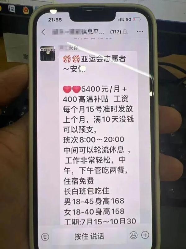騙子在網上發布亞運會兼職信息,以繳納報名費、工本費等理由,誘導受害人轉賬匯款,等亞運會臨近時,將受害人拉黑,消失不見。