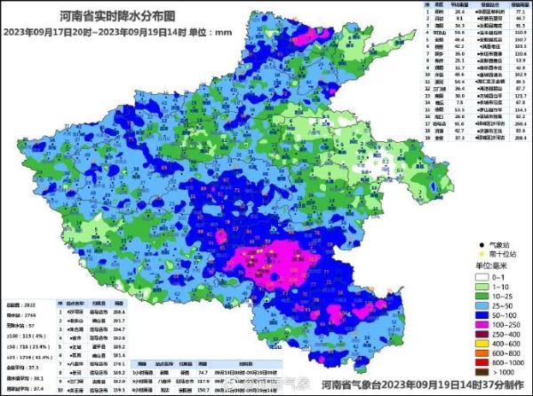 據(jù)@河南氣象 預報,17日20時至今天14時,駐馬店、安陽、信陽、南陽、平頂山、新鄉(xiāng)、鶴壁、許昌部分縣市出現(xiàn)大暴雨,全省平均降水量37.3毫米,地市平均降水量駐馬店91.0毫米、平頂山58.6毫米、信陽53.5毫米,有101個縣(市、區(qū))降水量超過50毫米,其中大于100毫米的有24個縣(市、區(qū)),位列前三的分別為:駐馬店市沙河店208.4毫米、確山縣老樂山201.7毫米、駐馬店市朱古洞194.7毫米。最大小時降水量為新縣新集74.7毫米(19日8時至9時)。