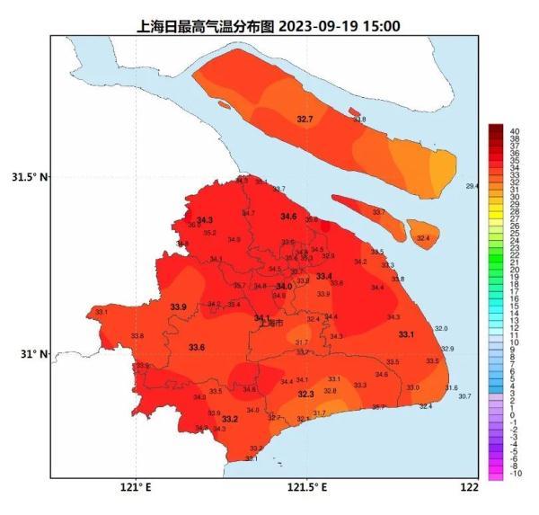 從常年(1991-2020年)來看,徐家匯站9月中旬日最高氣溫一般會在28~29℃,今天的34℃是偏高的,但也不是最高的,歷史上9月中旬的最高氣溫甚至達到過37.4℃(1949年)。