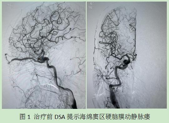由于病例少見,治療團隊在黃濤主任和張迎光副主任醫師主持下進行討論,決定使用神經介入微創手術治療該患者。手術由陳發軍醫師主刀,采用“彈簧圈+ONYX膠栓塞”技術,術中完全栓塞瘺口,手術順利。術后,患者眼球紅腫明顯減輕,視力也開始恢復。