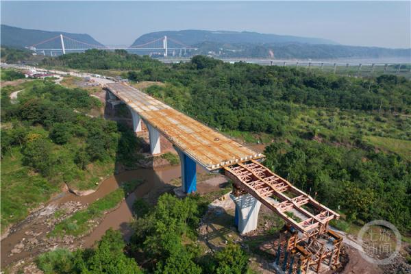 9月18日,重慶廣陽島智創生態城苦竹溪大橋鋼箱梁頂推完成,其頂推鋼材之重,跨度之大均為重慶市政橋梁之最。