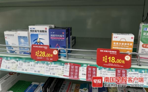 紅眼病高發(fā),也帶動了眼藥水的銷量。在南寧市民主路一家藥店,記者咨詢眼藥水?dāng)[在哪個位置,店員馬上詢問是不是要買治療紅眼病的眼藥水。店員稱,由于近期紅眼病增多,導(dǎo)致消炎類眼藥水熱銷,某些品牌的眼藥水已經(jīng)售罄,目前正在補貨。記者走訪發(fā)現(xiàn),南寧市長堽路、新竹路上的多家藥店,也有類似情況。