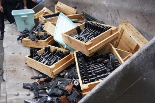 據悉,此次活動集中銷毀各類非法槍支983支、子彈11190發、管制刀具63把、仿真槍72支、炮彈34枚、雷管41枚、導爆索43根、傳爆管62個、煙花爆竹300余箱 。