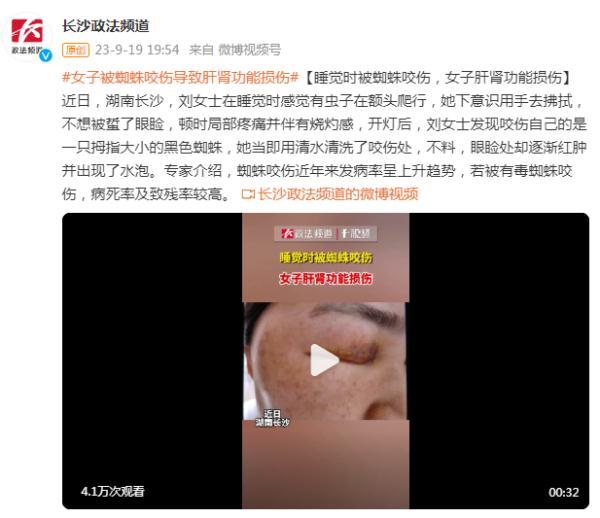 近日,湖南長沙,劉女士在睡覺時感覺有蟲子在額頭爬行,她下意識用手去拂拭,不想被蜇了眼瞼,頓時局部疼痛并伴有燒灼感,開燈后,劉女士發現咬傷自己的是一只拇指大小的黑色蜘蛛,她當即用清水清洗了咬傷處,不料,眼瞼處卻逐漸紅腫并出現了水泡。專家介紹,蜘蛛咬傷近年來發病率呈上升趨勢,若被有毒蜘蛛咬傷,病死率及致殘率較高。