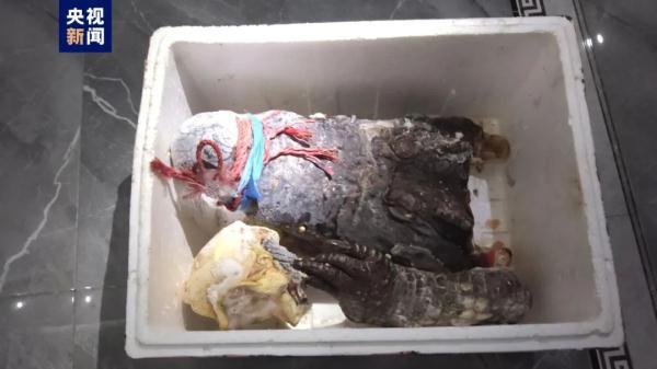 另外1條鱷魚,經(jīng)公安部門調(diào)查得知,于2021年12月27日,被該養(yǎng)殖場(chǎng)員工發(fā)現(xiàn)精神狀態(tài)不佳(臨近死亡)后,被該養(yǎng)殖場(chǎng)員工宰殺,并將部分鱷魚肉出售,鱷魚頭被冰凍保存。公安部門已提取到宰殺鱷魚當(dāng)晚的相關(guān)微信對(duì)話記錄,及現(xiàn)場(chǎng)宰殺鱷魚的視頻錄像等證據(jù)進(jìn)行保存,并到該員工家中取走鱷魚頭和部分鱷魚腳等部位的凍體進(jìn)行封存取證。