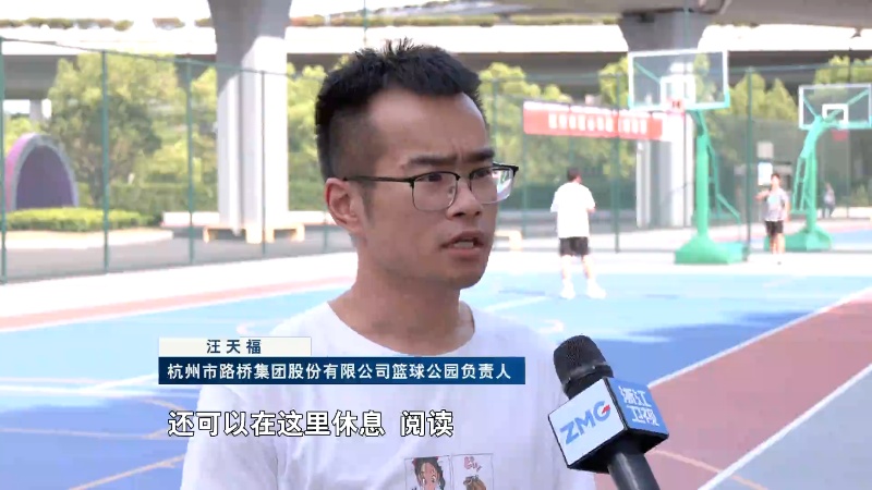 杭州市路橋集團股份有限公司籃球公園負責人汪天福:市民不僅可以打球,還可以在這里休息、閱讀、喝喝水、充充電,兩個停車場有150個停車位,是真正把惠民的措施給到老百姓。