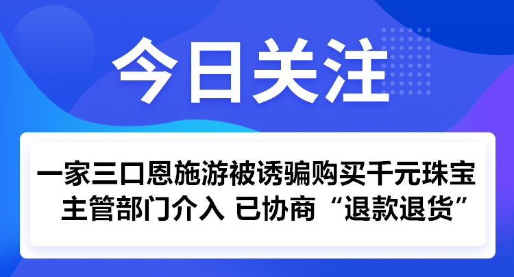 湖北省文旅廳:一、情況核實:相關單位和部門迅速與您及涉事旅行社聯系,經調查,您一行三人報團參加湖北零零捌國際旅行社有限公司7月15日至7月19日的5天4晚旅游行程,其中合同包含中國硒港、和氏壁文化中心、天工開物展覽館三個購物店。在7月19日隨團參觀天工開物展覽館時購買價值兩千多元的一枚吊牌,隨后發現該店的經營模式存在誘騙購物等情況,要求退貨退款。二、辦理情況:針對您反映的購物店的經營模式存在誘騙購物情況,按照職責分工進行了查處:一是責令商家向游客退款,二是約談被投訴經營主體,下發《規范經營者價格行為提醒告誡書》,要求經營主體遵守相關法律法規,誠實守信,合法經營。經過相關單位和部門溝通調解,該旅行社已協調退貨退款,雙方達成協商一致意見,商家已退回相關款項。下一步,我們將進一步加強旅游市場秩序整治,依法打擊旅游亂象,維護旅游者合法權益。
