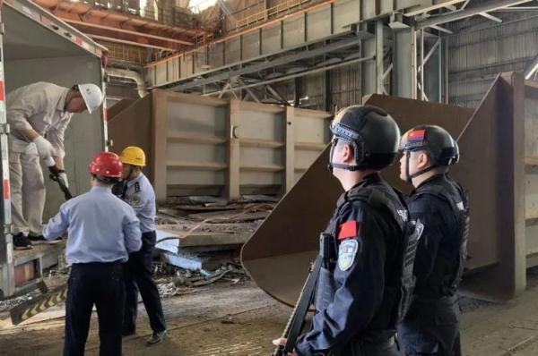 在2023年全國公安機關集中銷毀非法槍爆物品活動遼寧朝陽現場,民警將各類非法槍支、管制刀具依次分類擺放整齊,在清點整理完畢后,全部運抵鞍鋼集團朝陽鋼鐵有限公司的銷毀現場,投入高溫熔爐進行了統一銷毀。
