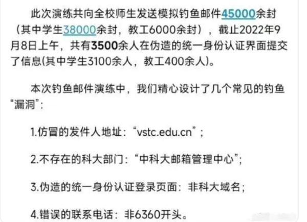 演練當(dāng)天,共有4萬余名師生收到這封模擬“釣魚”郵件,54%的師生閱讀了郵件,其中約5000名師生點(diǎn)擊了可疑鏈接,約2000名師生在后續(xù)登錄頁面輸入了用戶名和密碼。