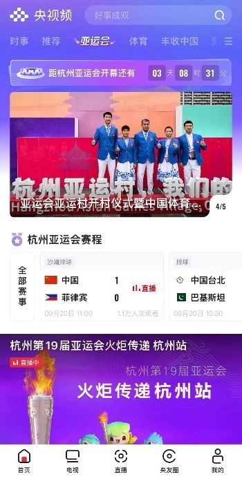 日前,杭州亞運會專題頁亮相央視頻客戶端,正式為用戶提供全方位的資訊服務,伴隨賽事進度,端內還將上線賽程表、金牌榜和原創自制節目專區,開設項目專欄、賽事預約、賽事直播、比賽回放等功能。