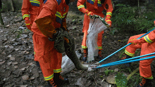 救援人員用時5分鐘,將蟒蛇捕獲裝袋,歸隊后聯系了河口縣林業和草原局,等待相關工作人員上門處理。