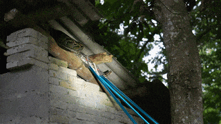 9月17日,紅河州河口縣消防救援大隊接到群眾報警求助,有一個“不速之客”闖入李女士家中偷鴨子,吃飽之后還在房梁下打盹小憩,嚇得李女士趕忙撥打119報警電話求助。