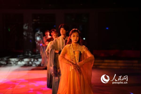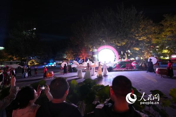 快閃燈光舞蹈《炫彩映國潮》演繹。 人民網記者 王天樂攝