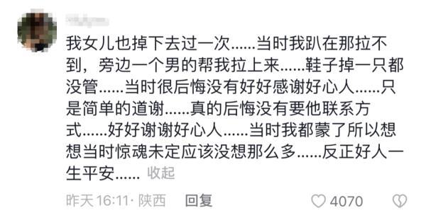 視頻中,目擊者汪女士稱,她在現場看到的時候小孩就在下面哭,工作人員轉了半天,不知道怎么拉(上來),小孩的爸爸也不知道怎么拉。一位阿姨說應該可以拉得起來,然后就真的把小孩拉起來起來了。