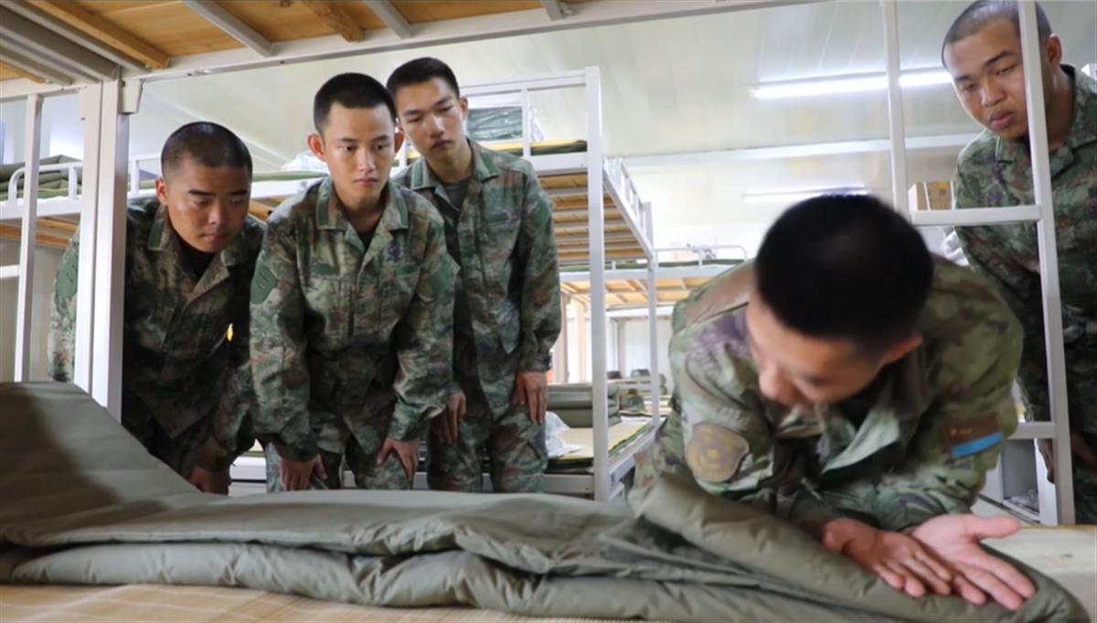 來到陌生的軍營,新兵們簡單收拾行李后,在指導員的講解中了解連隊情況,在班長的組織下學疊軍被。