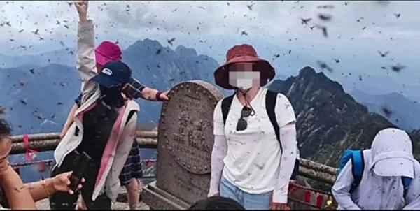9月20日,多名游客稱安徽黃山景區的蓮花峰有大量飛蟲,直沖人臉,多到眼睛都睜不開。