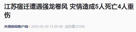 在此之前,宿遷市已經遭遇龍卷風。 據央視新聞客戶端20日消息,9月19日17時20分許,江蘇省宿遷市宿豫區大興鎮、市經開區南蔡鄉局地陸續發生強龍卷風,等級判定為EF2級,造成部分地區人員傷亡和財產損失。
