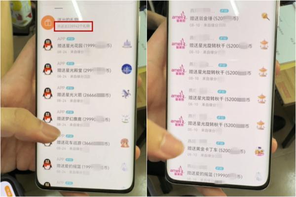 嫌疑男子黃某在網絡上打賞的部分記錄