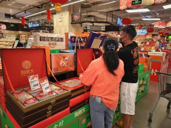 永輝超市內(nèi)一對(duì)夫妻正在挑選月餅