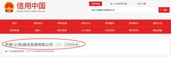 根據(jù)“信用中國”網站公示信息,施工方中息(上海)建設發(fā)展有限公司目前為失信懲戒對象,僅今年就有4次嚴重失信記錄,最近一次立案時間是2023年6月5日。