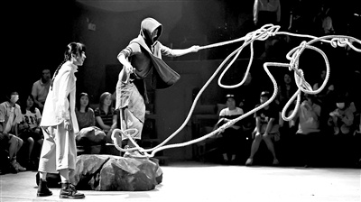 為了更好地理解湘西風景的精髓,劇組特意去茶峒采風,捕捉到當?shù)亍袄伞边@一重要交通工具,因而找到生命之繩這一重要意象。一條繩索穿過渡船連接兩岸,成為劇中翠翠和爺爺賴以為生的生計,而“繩”也在舞臺上變化為河流、渡船甚至是家。