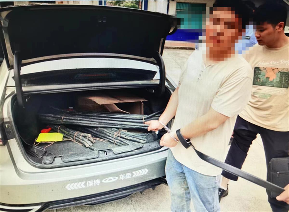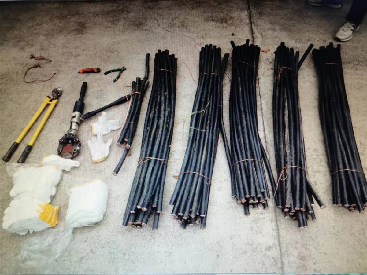 次日凌晨,專班民警在黃石鐵山胡某出租屋門口,將作案歸來正在“卸貨”的嫌疑人胡某當場抓獲,現場查獲大量盜割的電纜、作案工具等物品。