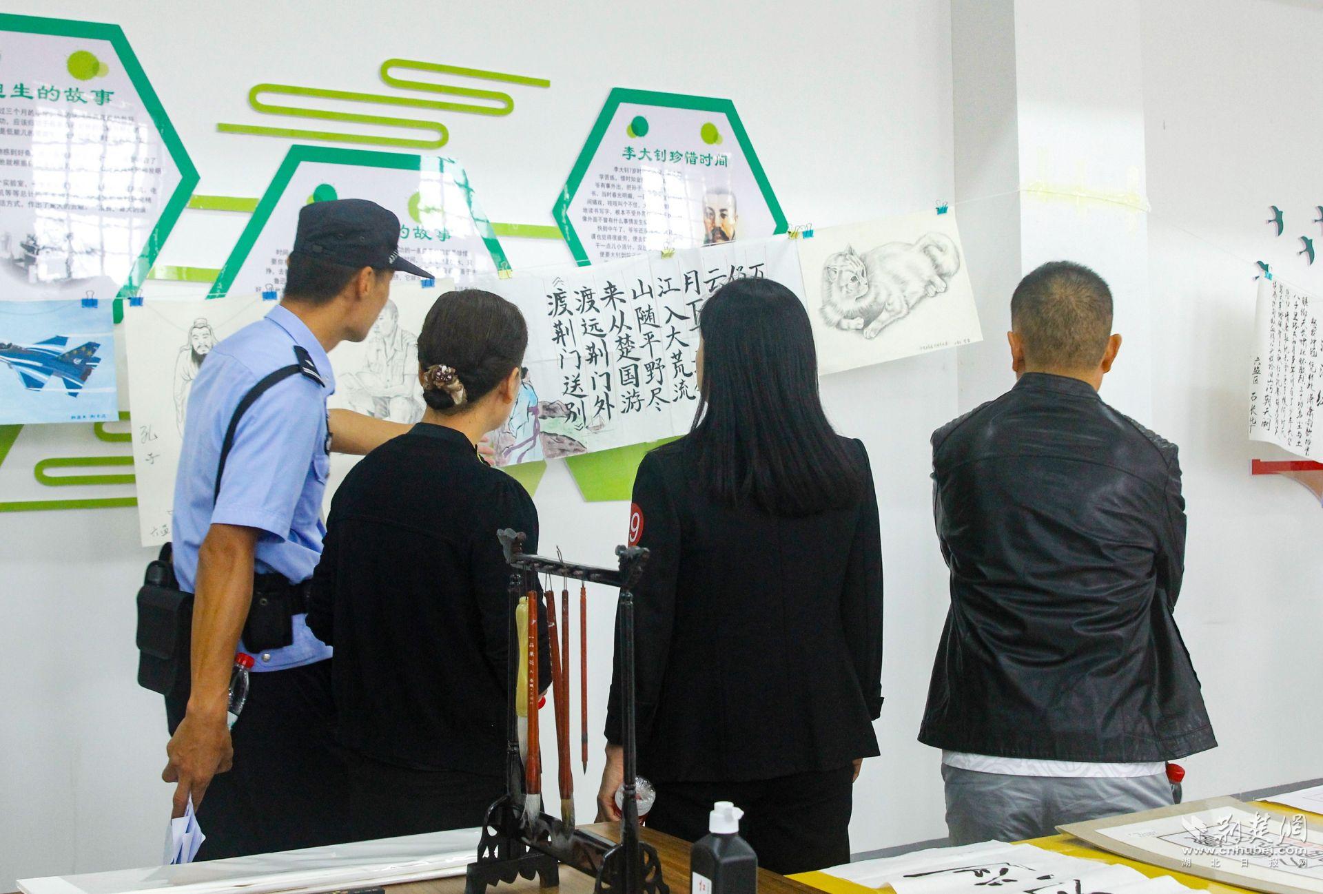 罪犯家屬參觀罪犯創(chuàng)作的書畫作品。肖慧婷 攝